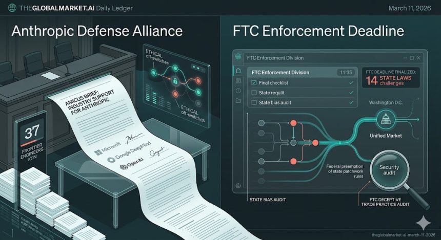 As we document the historical record for March 11, 2026, the narrative is defined by “The Ethical Standoff” and “Regulatory Thresholds.” This was the day the world’s largest tech companies stood unified against a government blacklist, and the federal hammer officially fell on the state-level “Articles of Confederation” era of AI law.